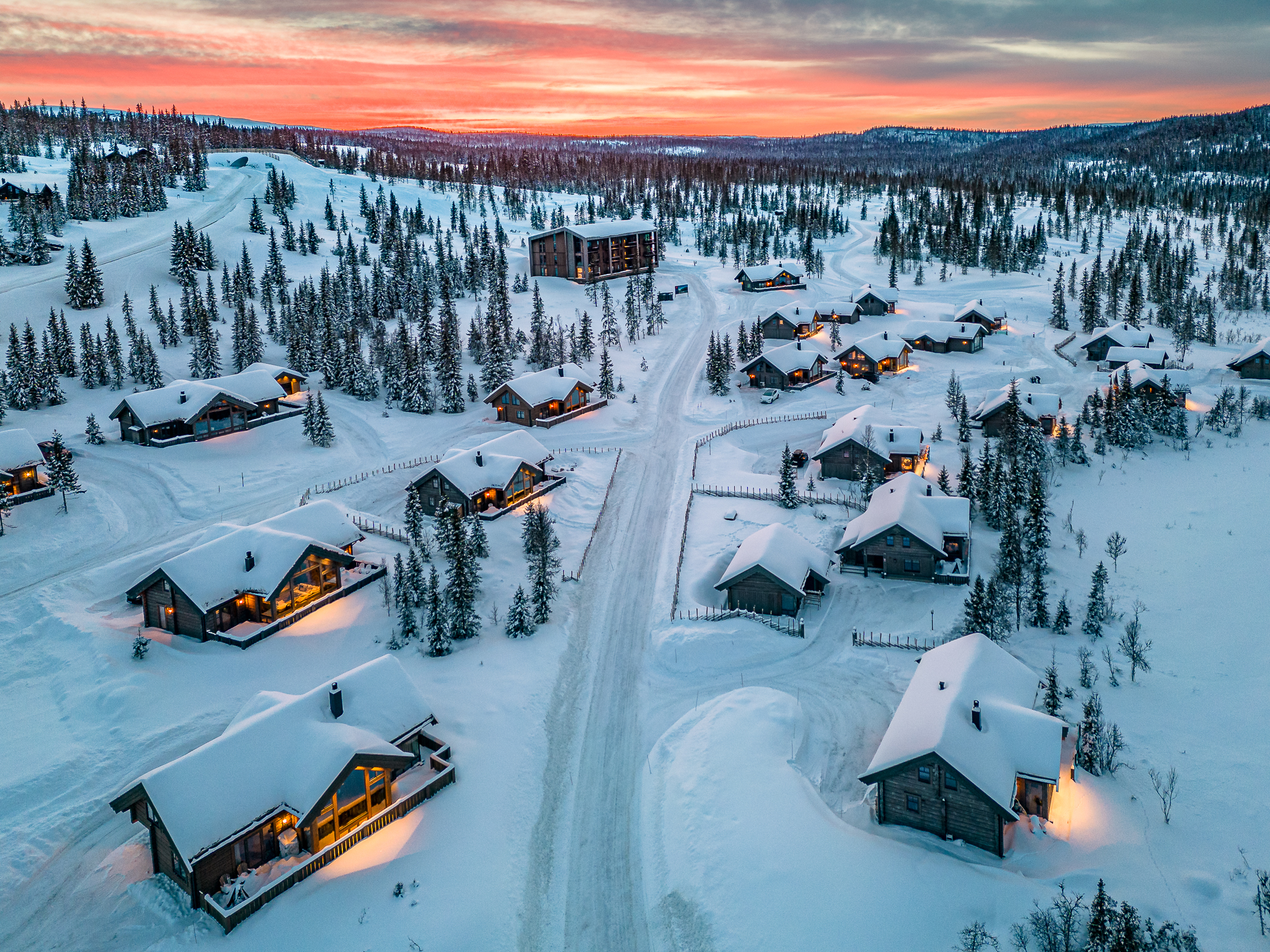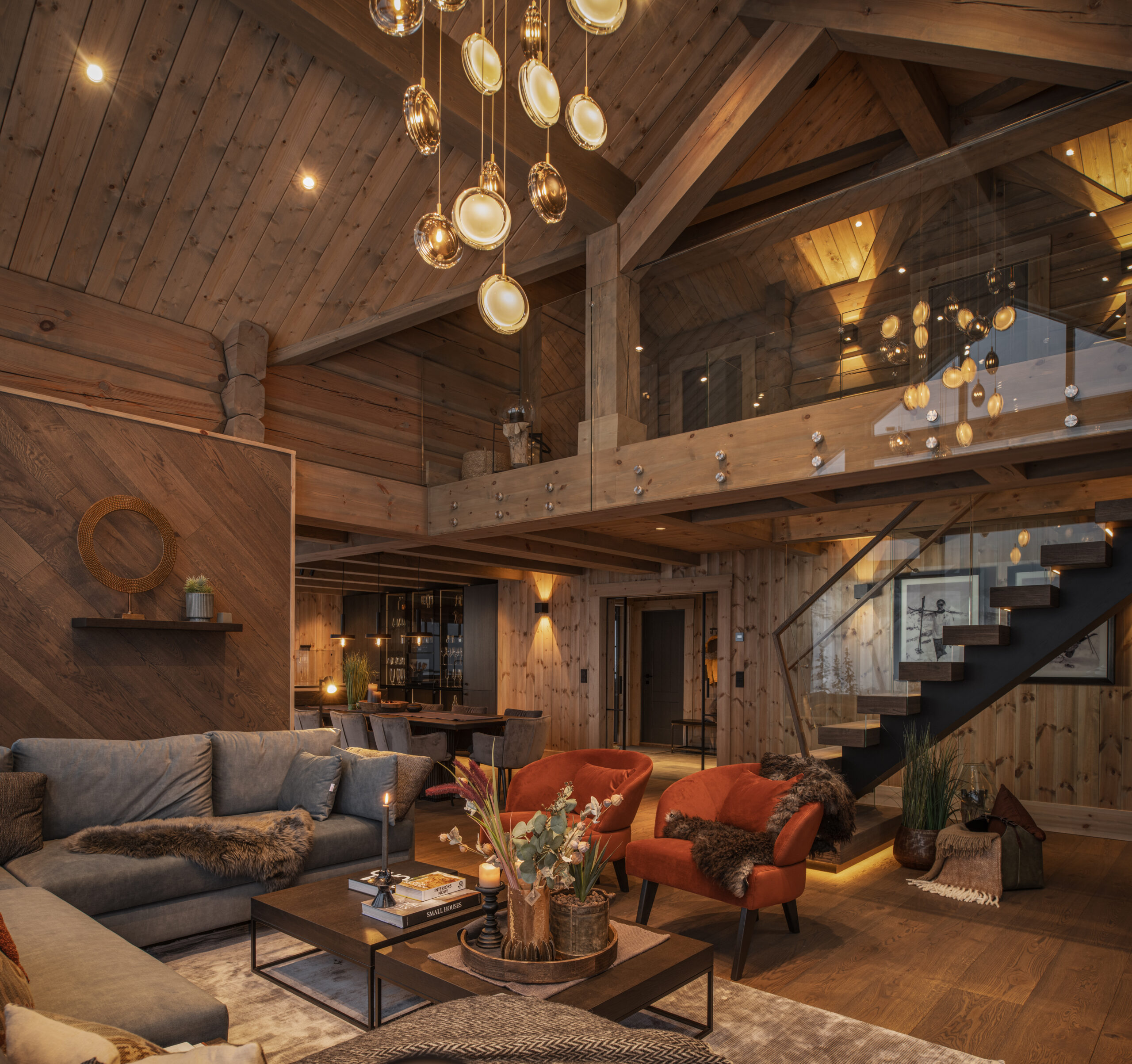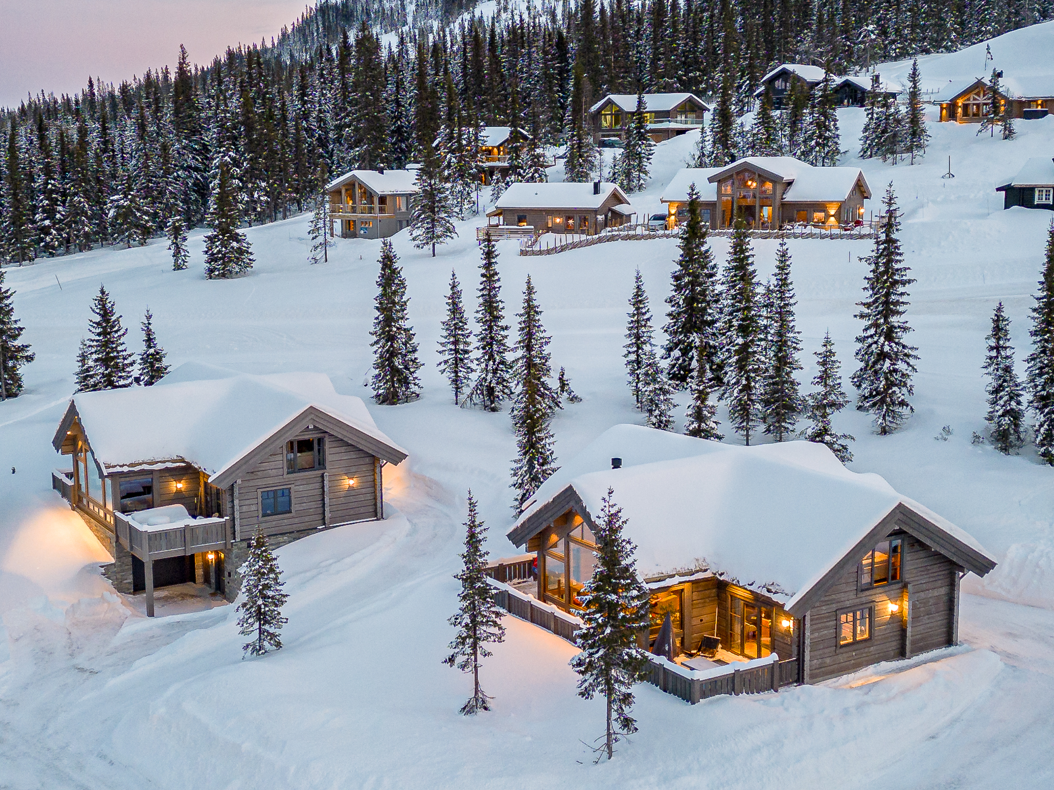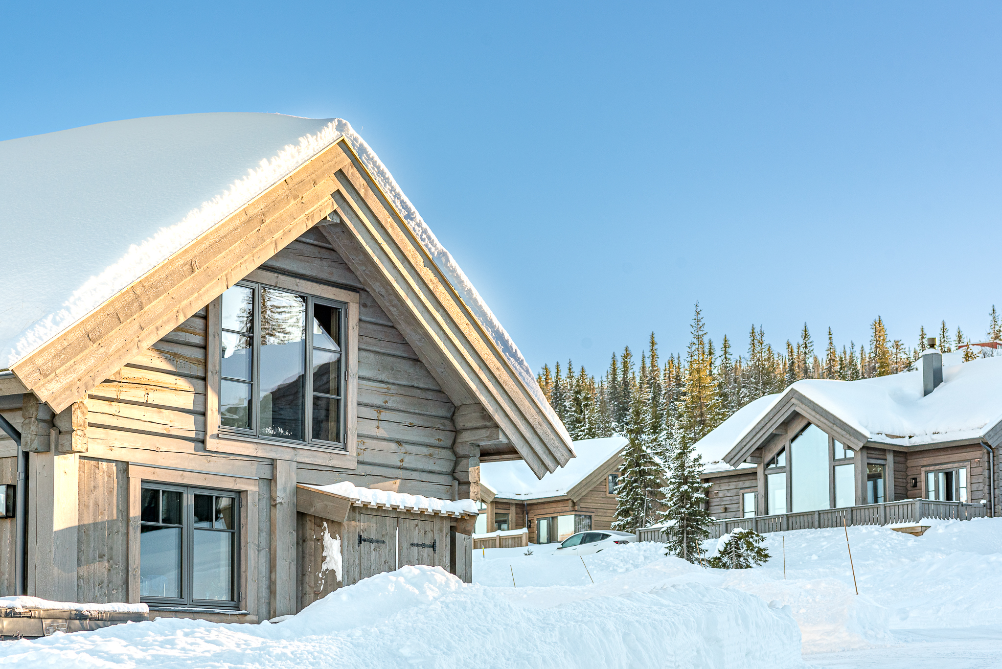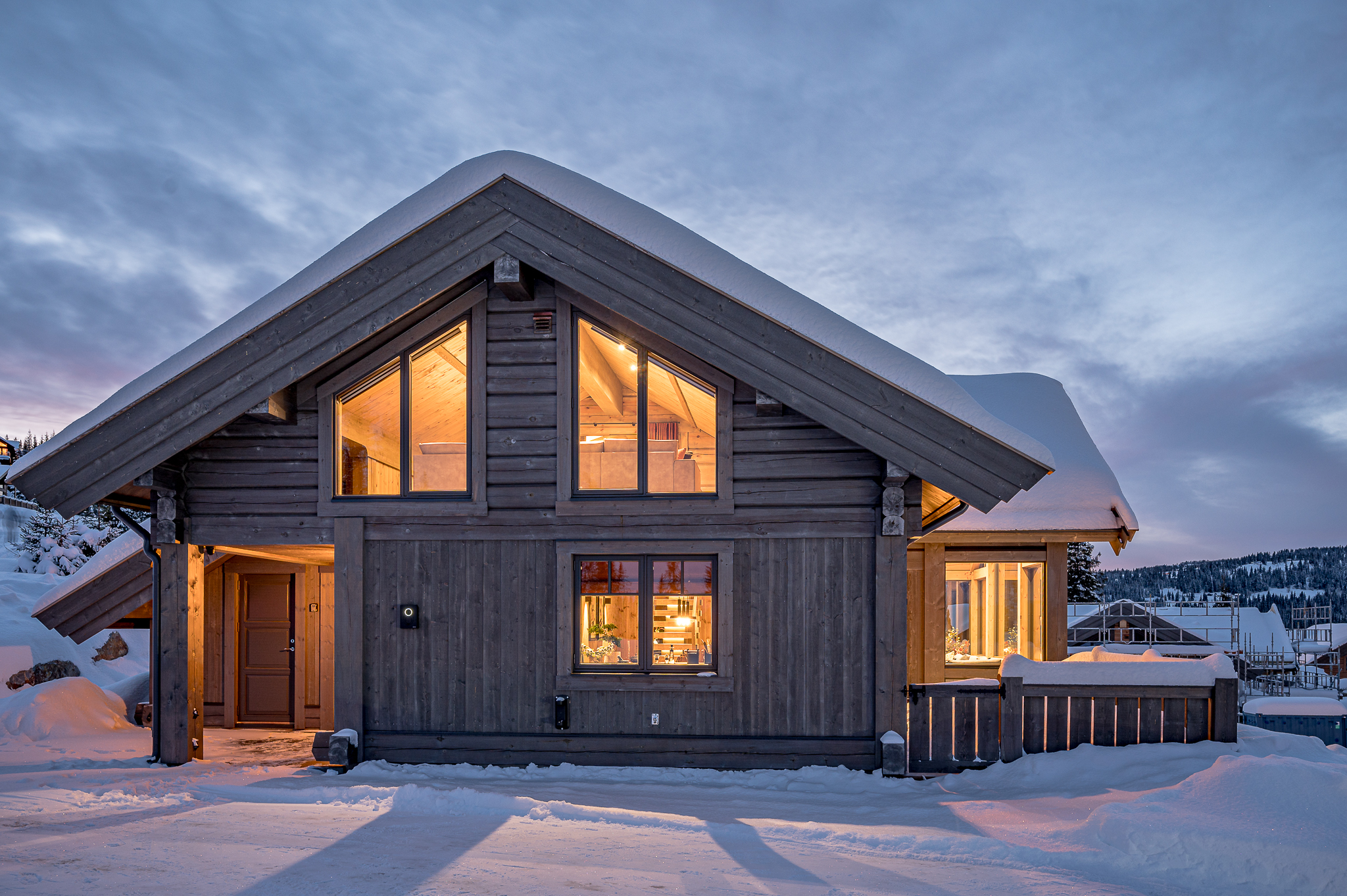 Fjell Entreprenør, som en del av LHM Group, er ansvarlig for den viktigste finishen på alle hyttene – og demonstrerer ekspertise innen både autentiske tømmerbyggeteknikker og moderne tømmerrammeløsninger.