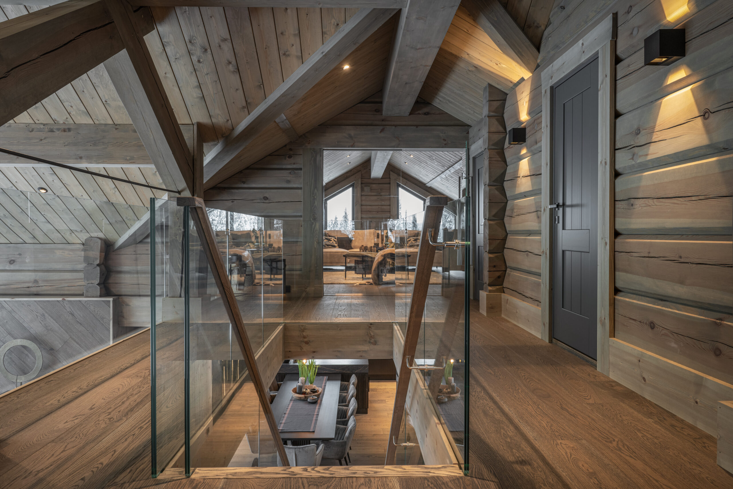 • Stavlafthytter – som kombinerer oppreiste stolper og horisontale tømmerstokker for stabilitet, energieffektivitet og en raffinert tradisjonell estetikk.