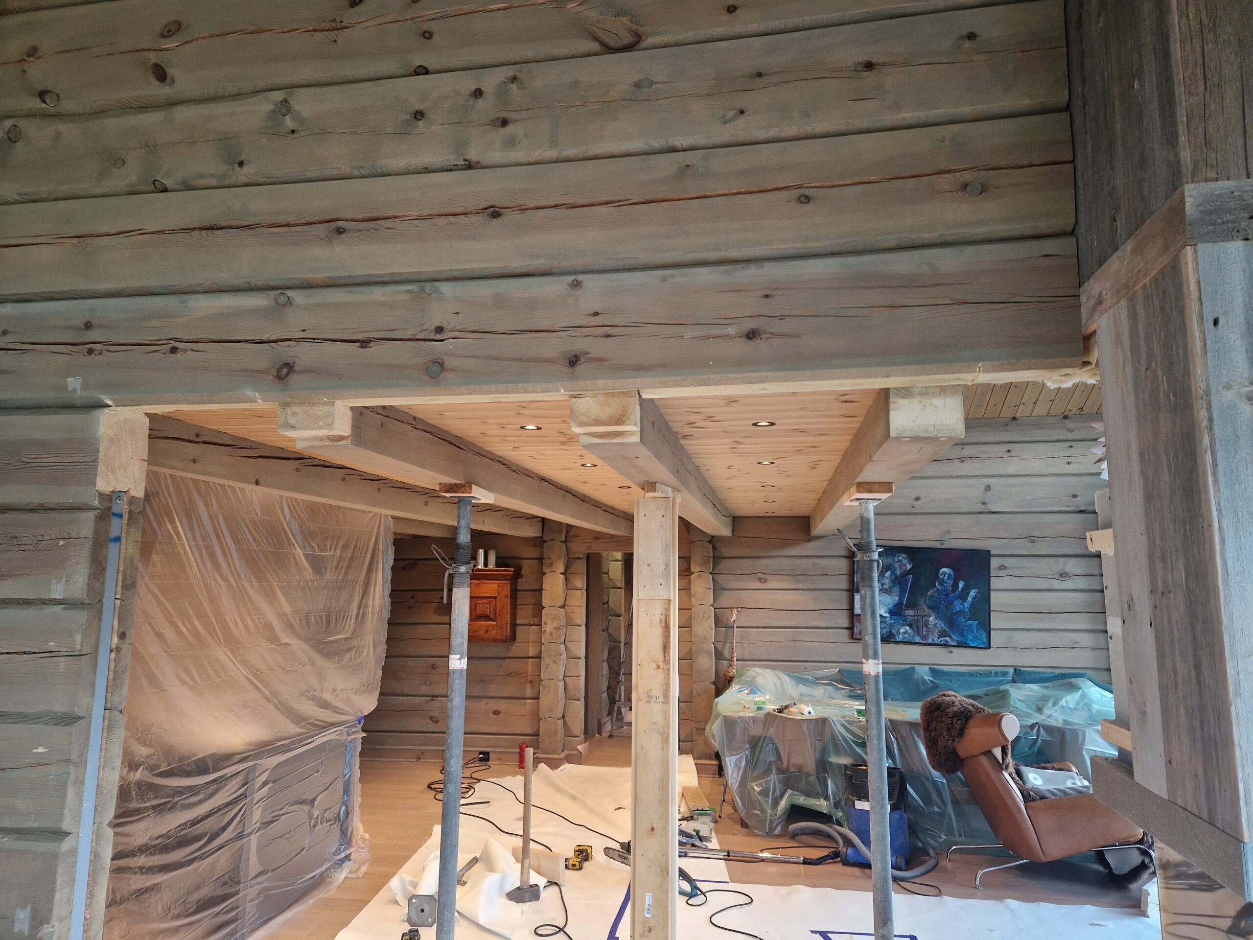 - Gjenoppbygging av takkonstruksjon – Hele taket ble demontert og rekonstruert med korrekte dimensjoner og støtte, noe som sikrer langsiktig sikkerhet under Geilos tunge snøforhold.