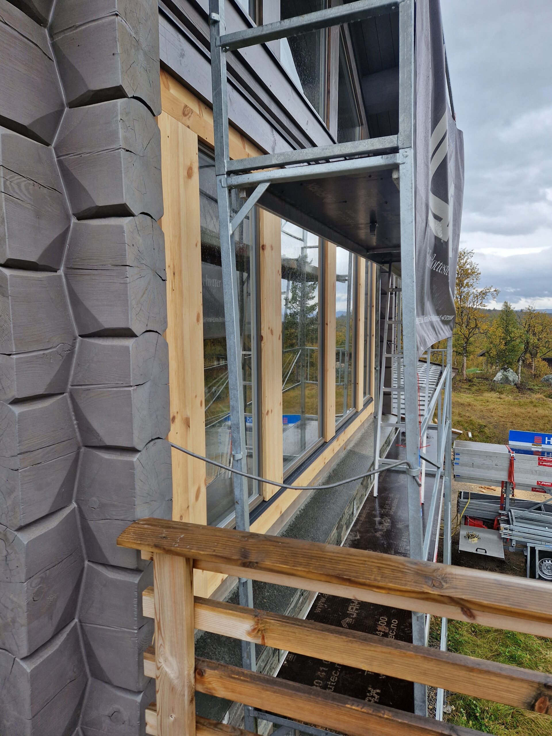 - Fasaderenovering – All utvendig kledning ble slipt, forseglet og malt på nytt med værbestandige belegg, noe som beskytter hytta mot fuktighet og forbedrer isolasjonen.